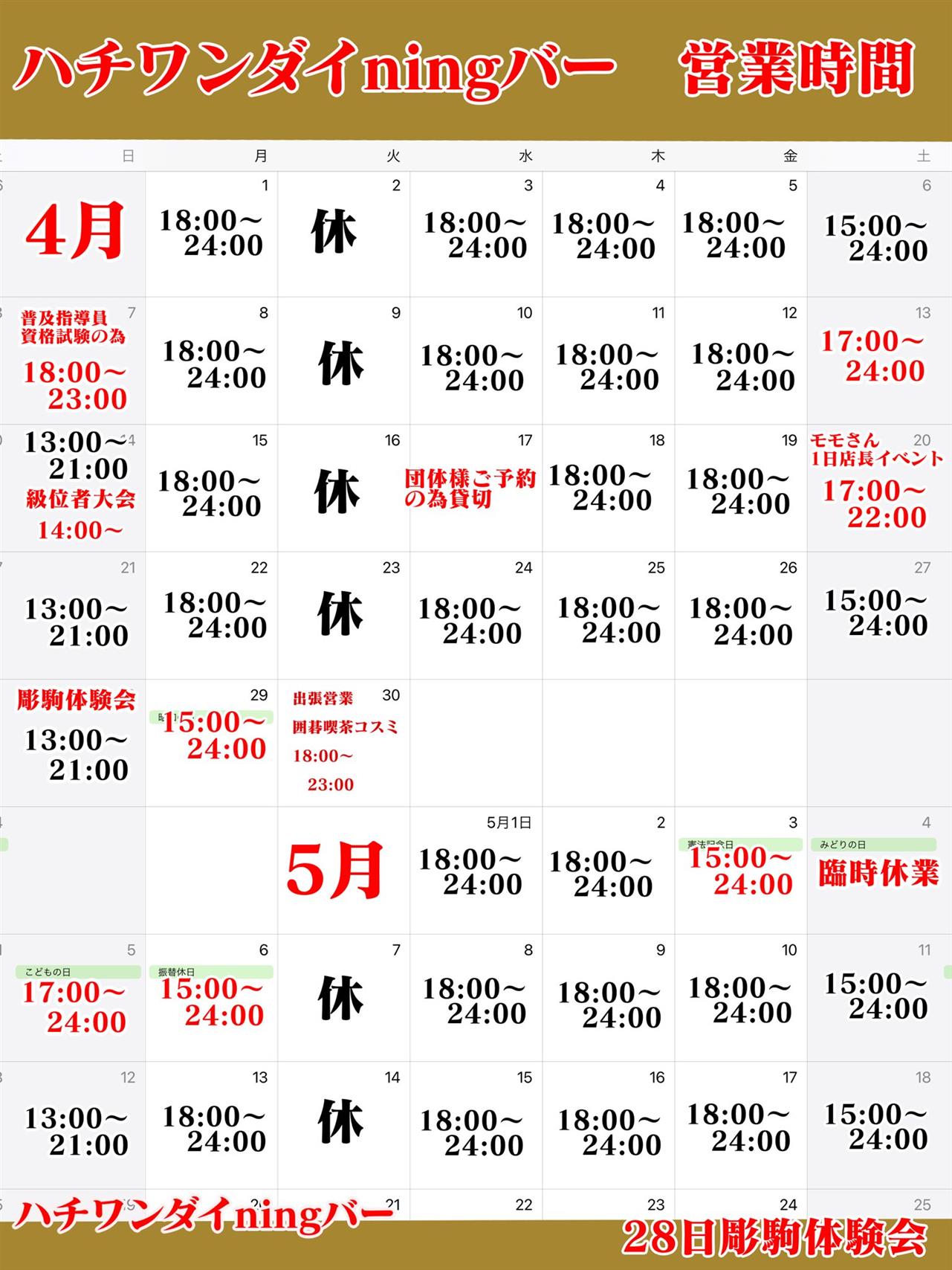 いつもご来店ありがとうございます4月の営業時間ですご確認の上お越しください。