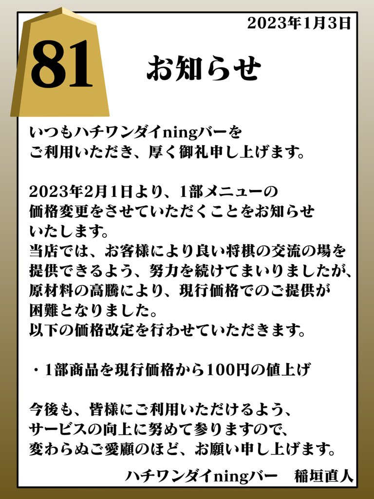 2023年2月より1部商品の値上げをしますことをお知らせいたします。
