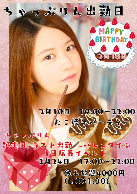 24日は将棋女子ちゃっぷりんさんのバースデー、ラスト出勤日、バレンタインを兼ねて1日店長イベントです!