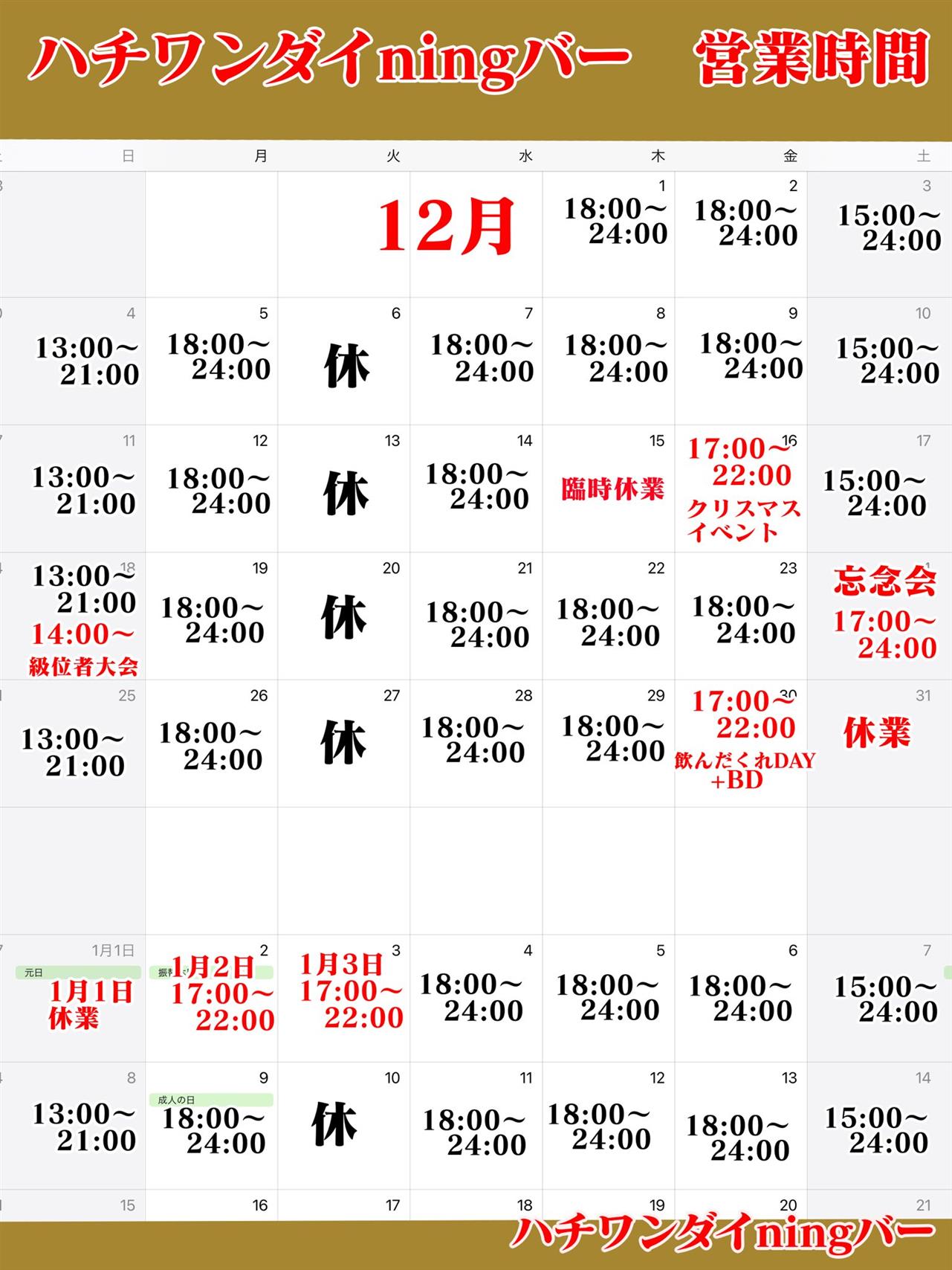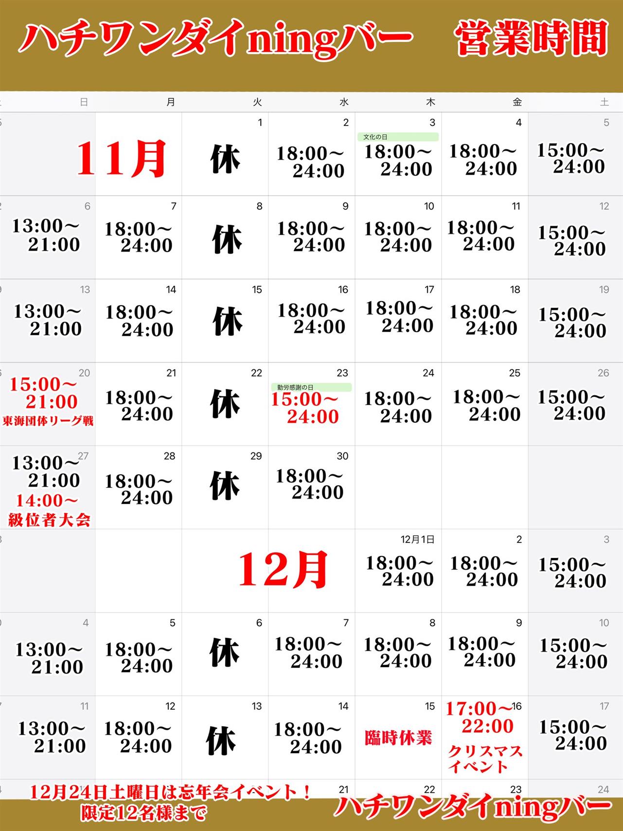 イベントなどがありますので、ご確認お願い致します。