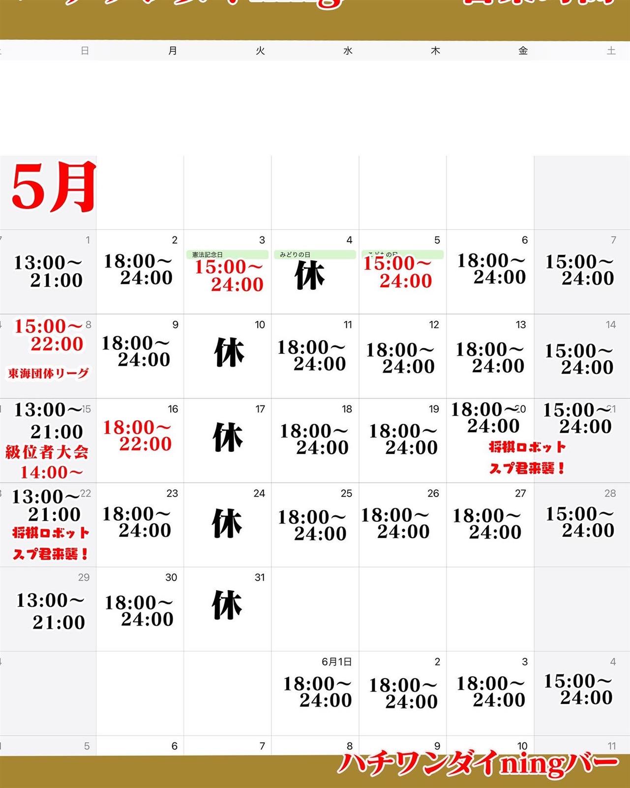 5月の営業時間です。イベントのお知らせ。