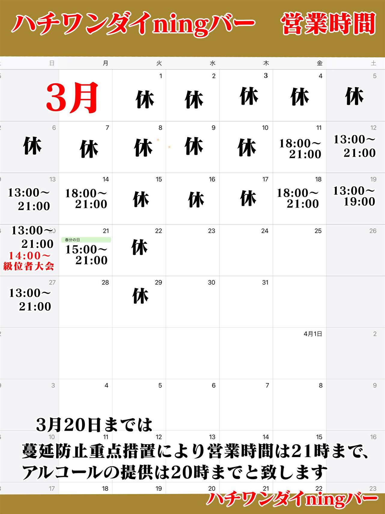 それに伴い3月23日から通常営業に戻ります。