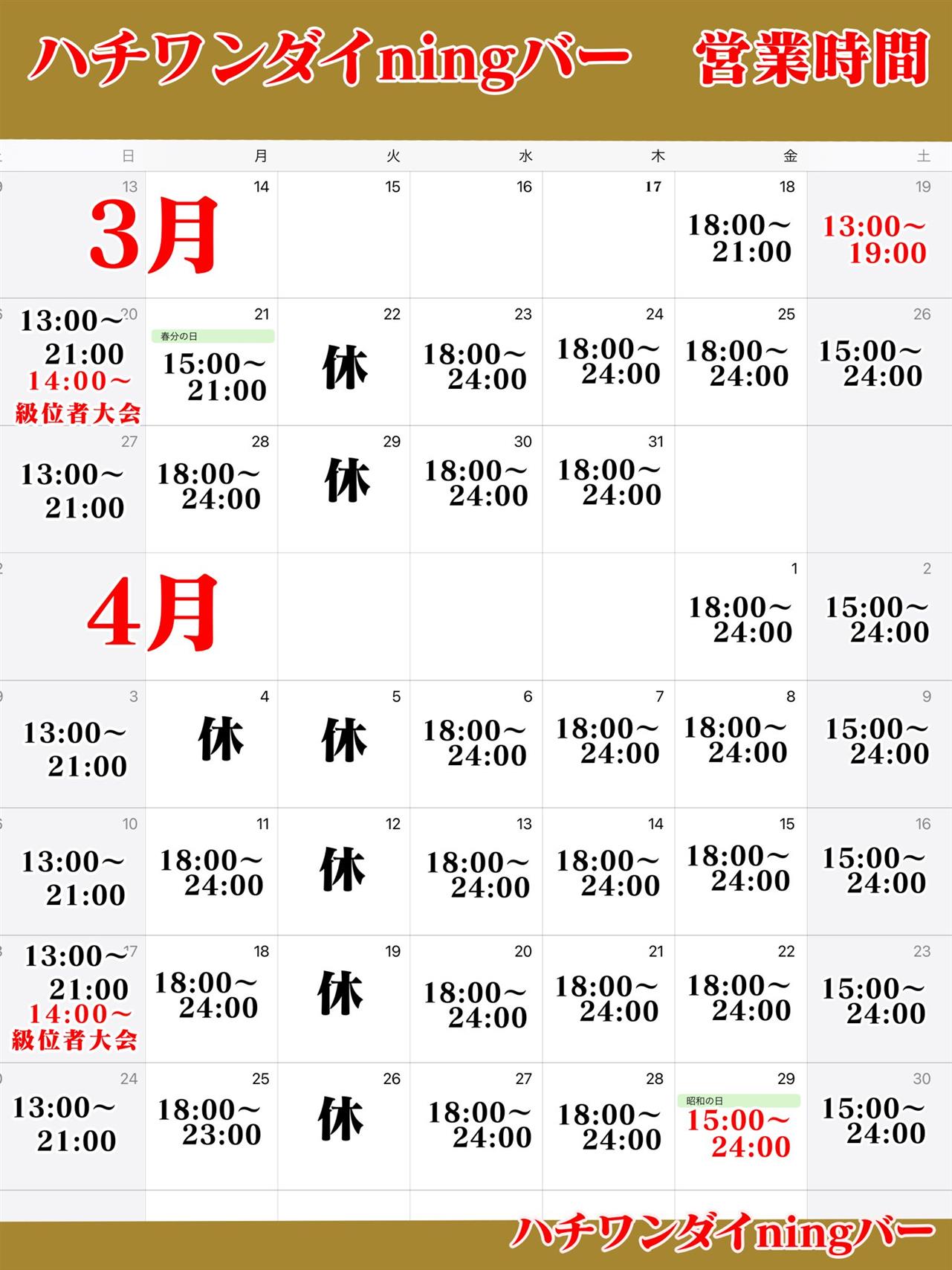 4月の営業時間です。